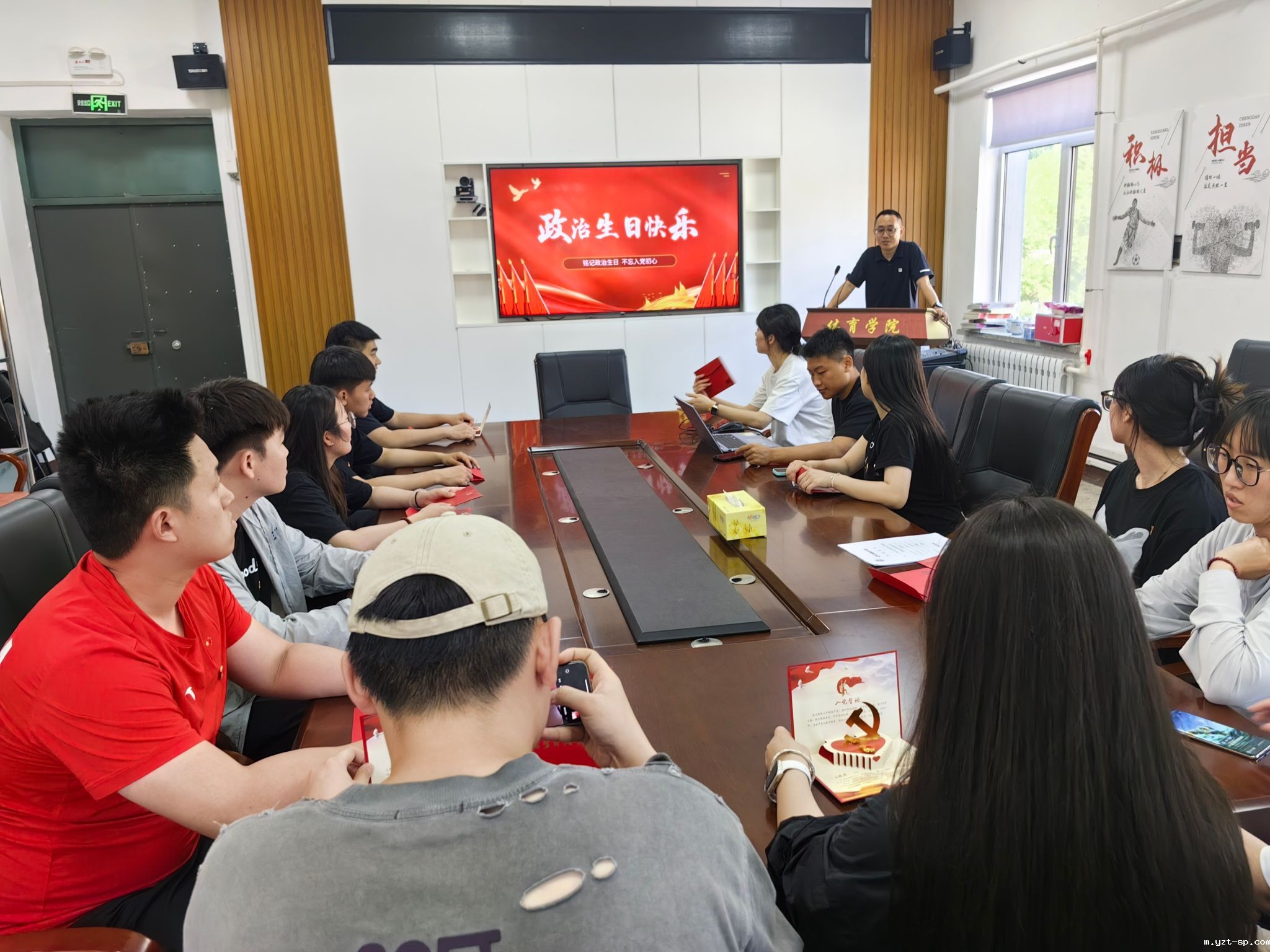 在活动中,党支部书记郑重老师首先寄语毕业生党员要牢记入党日期,铭记政治生日,在未来的学习和工作中发挥党员先锋模范作用;接着为每一位毕业生党员送上了政治生日卡,与大家共同回忆大学入党的初心和难忘的经历;最后为毕业生党员拍摄了集体生日照,定格这美好的瞬间。